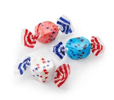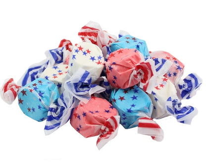 Stars and stripes forever! That's what you'll be singing once you get a whiff and taste of these Sweets All-American Taffy candies. In red, white and blue, these little taffies are even more patriotic because their wrappers are designed with a star spangled feel.Are you getting ready for a huge Fourth of July Party? Do you have a Memorial Day parade you'd like candy for? Are you honoring a veteran this Veteran's Day? Whatever the patriotic occasion, these Sweets All American Taffy candies are sure to fill your heart with national pride and your bellies full of deliciousness!