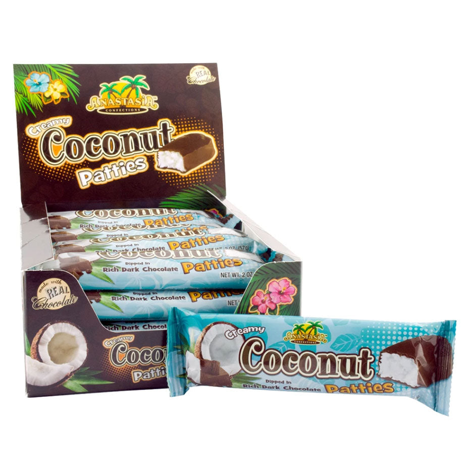 Anastasia dark chocolate covered coconut patties in candy bar form!