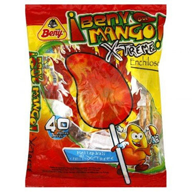 Beny Mango X-Treme lollipops will excite the senses with an unusual combination of fruit and vegetable flavors! This Mexican lollipop includes a traditional stick with a serving of hard candy on top. Open the wrapper and taste the unique seasoning that coats the outside of each pop. Next, your taste buds can savor an exciting blend of sweet mango and chili pepper. It's a one-of-a-kind Mexican candy that everyone will love!