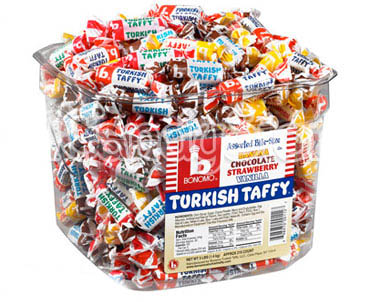 Our enormous bulk Bonomo Turkish taffy bites tub is a must-have for parties and events. Place them out and let guests grab a few or get fancy and add them to candy dishes or jars to set on tables. Turkish taffy also makes a great filler for treat bags and wedding favors.