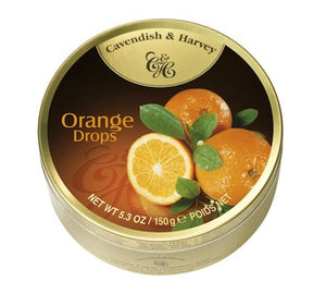 Gorgeous orange hard candy drops in stylish tins! Made with natural orange and dusted with lovely icing sugar. Cavendish and Harvey candy drops are a fine fruity candy drop.