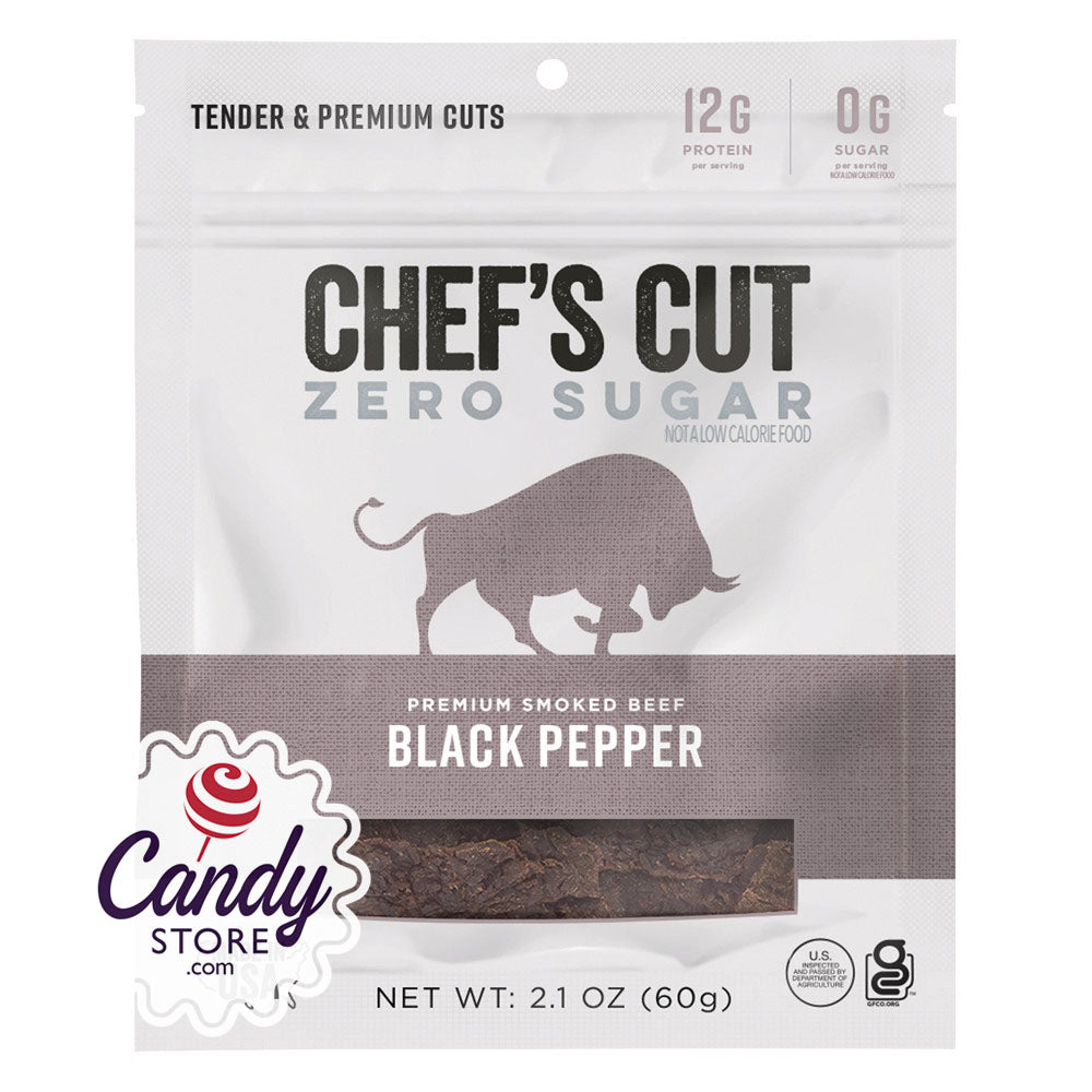 Chef's Cut Zero Sugar Black Pepper Beef Jerky 2oz Peg Bags - 8ct CandyStore.com
