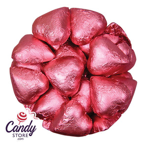 Bright Pink Foil Chocolate Hearts - 10lb CandyStore.com