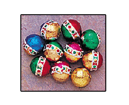 These lovely and delicious Christmas Chocolate Balls are covered in decorative and festive Christmas-themed foil. Like tiny ornaments, they shine and reflect green, red, blue, gold and white and unwrap to reveal a delicious ball of milk chocolate. Stock up on some holiday cheer for Christmas by ordering a bulk bag of Christmas Chocolate Balls today!