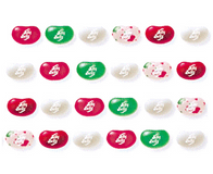 Our Jelly Belly Christmas mix contains an assortment of festive jelly beans chosen for their holiday colors. Each piece is round with the famous "Jelly Belly" logo printed in white. This wintry collection includes red apple, white coconut, green apple and red very cherry jelly beans.