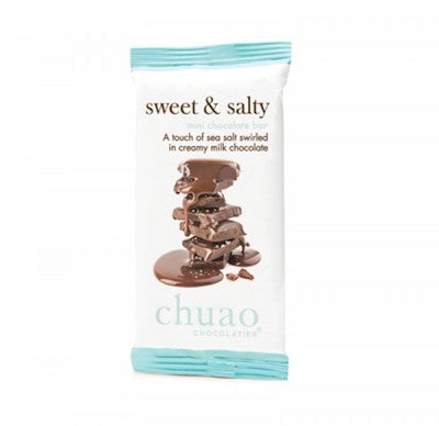 A creamy milk chocolate bar with a dash of sea salt for a complex flavor, Chuao Chocolatier®'s Sweet & Salty Mini Bars are an all-natural, gourmet treat.