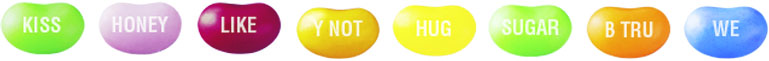What will the conversation beans say to the loved ones you share them with? Send a message of love and friendship with beans that say "B Tru", "Y Not" and "Honey". A number of different words and terms are included, each sending a positive message that's fun to read while you eat.