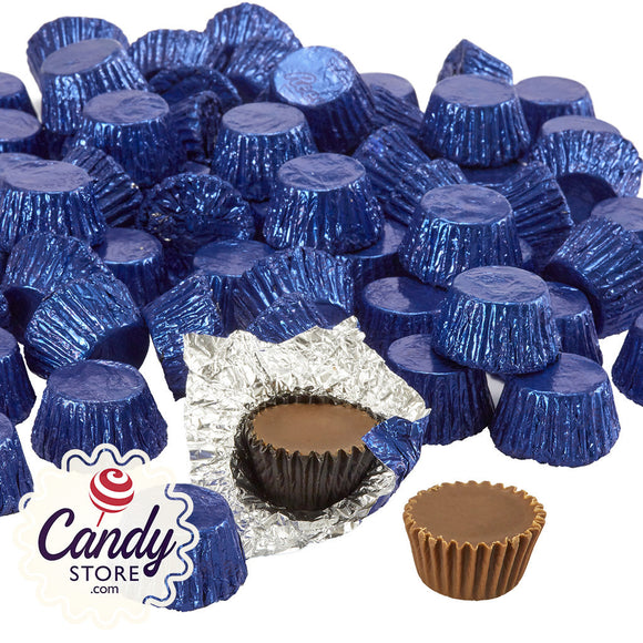 Dark blue Mini Reese's Cups. Dark blue foil-wrapped miniature peanut butter cups.