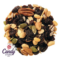 A wholesome snack mix of nuts, seeds, and sweet fruit perfect for repacking or bulk displays.