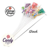 Foot lollipops in assorted colors from Fancy Pops. These are long-stem suckers with 12-inch length and individually wrapped. Flavors include Red Strawberry, Blue Blueberry, Pink Cherry, Green Apple, Yellow Lemon, Purple Grape.