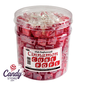 Old fashioned cinnamon Cube Pops are a unique confection that harkens back to simpler times. There's something warm and cozy about the taste of traditional cinnamon. Each Cube Pop includes a disposable stick with a 3D square shaped hard candy on top. Each bright red piece is filled with classic cinnamon flavor that's sure to satisfy sweet cravings with a touch of nostalgia. They arrive individually wrapped, making Cube Pops a great choice for party favors and more.