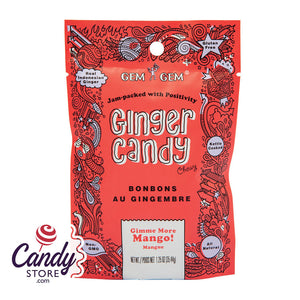 Gem Gem Chewy Ginger Candy Mango 1.25oz Peg Bags - 12ct