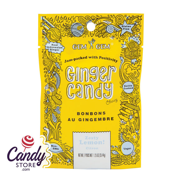Gem Gem Chewy Lemon Ginger Candy 1.25oz Peg Bags - 12ct