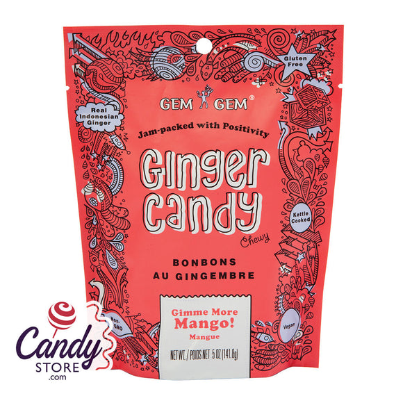 Gem Gem Chewy Mango Ginger Candy 5oz Peg Bags - 12ct