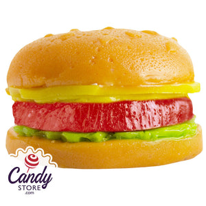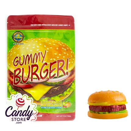 This giant gummy cheeseburger is stacked! This juicy burger comes with tomato, cheese, and lettuce and each of them are flavored individually, cherry, orange and sour apple.