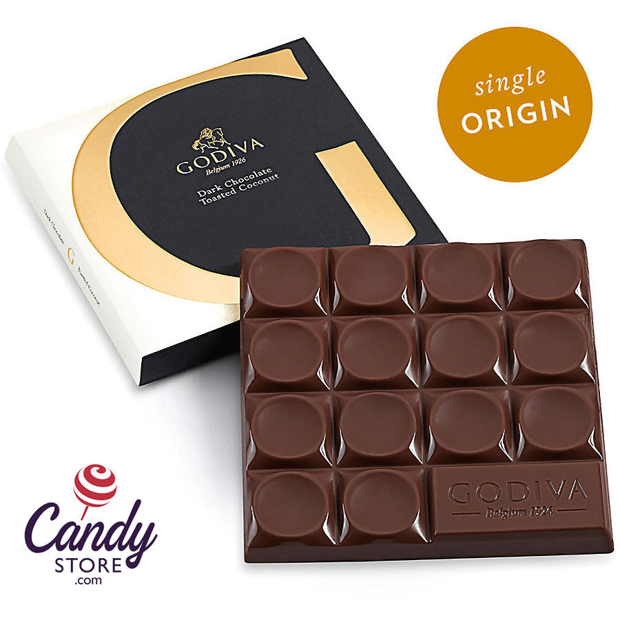 G by Godiva is their single-origin dark chocolate bars made from Mexican cocoa beans with toasted coconut, 68% cacao! Godiva chocolate bars are made with only the finest ingredients.