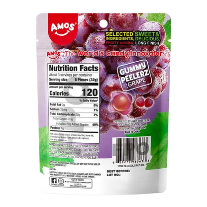 Introducing Grape Peelerz Gummies, for a unique and playful candy experience! These peelable grape gummies, as seen on TikTok, are sure to be a viral sensation. Get ready to peel, chew, and enjoy the delicious grape flavor of Amos Peelable Candy. Try them now!