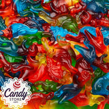 Each piece is covered in a combination of bright colors. Chew on a red and yellow brontosaurus or enjoy the amazing flavor of an orange and blue tyrannosaurus rex. Our bulk candy bag makes it easy to get plenty of dinosaur treats to go around! Use them to fill birthday favors at dino themed parties or pour them into a bowl for children at the family reunion. Any time is the perfect time to take a bite out of a Haribo dinosaur gummy!