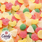 Reach into a bag of gummy fruit salad and enjoy the sweet sensation of orange, lime, cherry and more! Every piece is brightly colored in red, green, orange and other hues that match their fruity counterparts. This fat free candy is covered in a generous dusting of sugar for added texture and taste. Enjoy it as a guilt-free snack at home or buy our bulk candy pack and get plenty of Haribo fruit pieces to serve at any event. This nature-inspired confection is a big hit at picnics, parties, summer events and school activities!