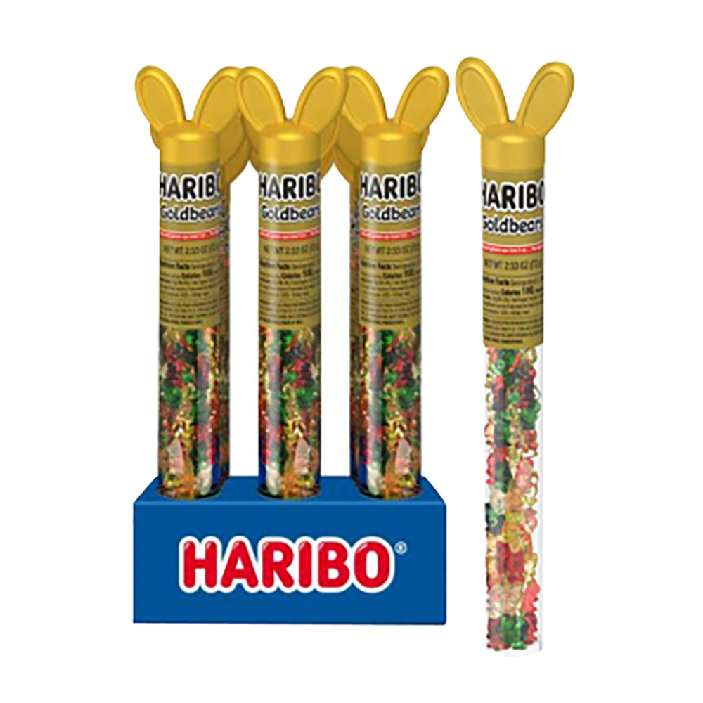 Festive Haribo Goldbears gummy bears are chewy and colorful! Classic fruit flavors in adorable bunny-ear tubes perfect for Easter baskets and gifts.