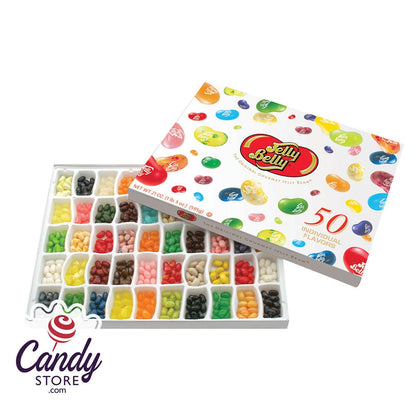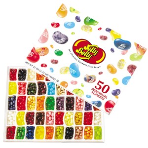 The Jelly Belly 50 flavor Gold Classic box is a must-have for anyone who loves jellybeans! This assortment lets you sample some of the brand's finest creations all in one convenient package. The inside is lined with dividers to create little cubbies for each flavor. Pick and choose or mix and match to come up with your own combinations! Our Jelly Belly 50 flavor box is the perfect gift for candy lovers.