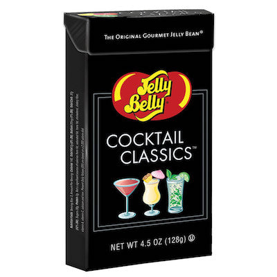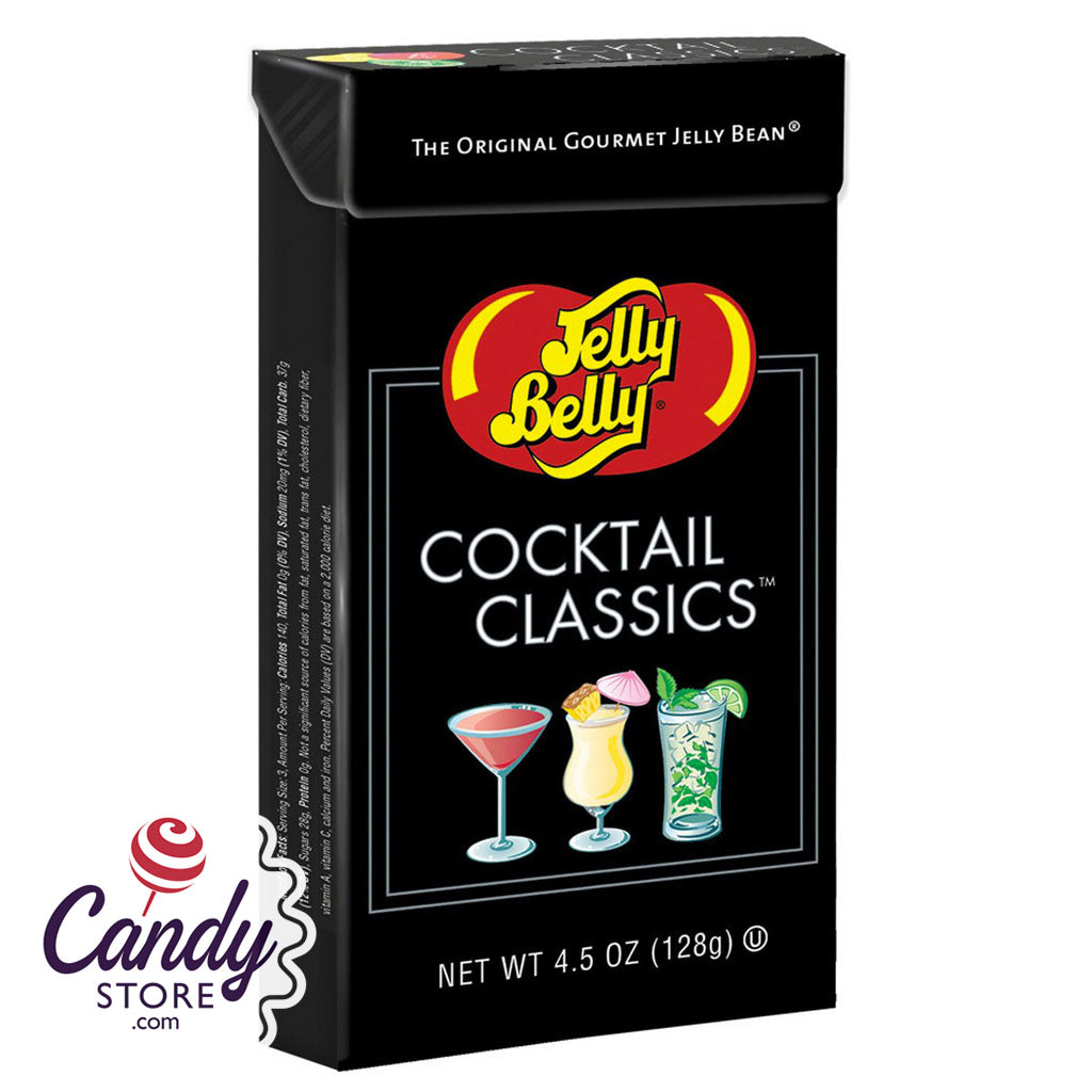 Jelly Belly Cocktail jelly beans flip top boxes are a fun way to share these beloved and classic flavors. Each box contains an assortment of fabulous cocktail flavors, each in a unique color and pattern. See flavors below.