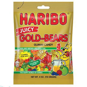 Haribo juicy gold bears will make any mouth water! These succulent snacks are the ultimate in chewy candy. Every piece is full of the fruit flavors that Haribo is known for. You'll love biting down to discover the sweet taste of orange, raspberry, apple and grape. These mouthwatering morsels are made even better because they are the juiciest gummy candies in our Haribo collection. Savor the smooth feel of soft chewy gummies and enjoy the refreshing taste of fruit juice in every bite!