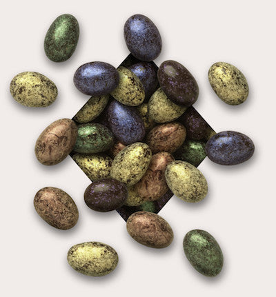 Multi-colors jewel-like chocolate almonds! Chocolate covered almonds colored with a jewel-like finish make for a gorgeous candy decoration.