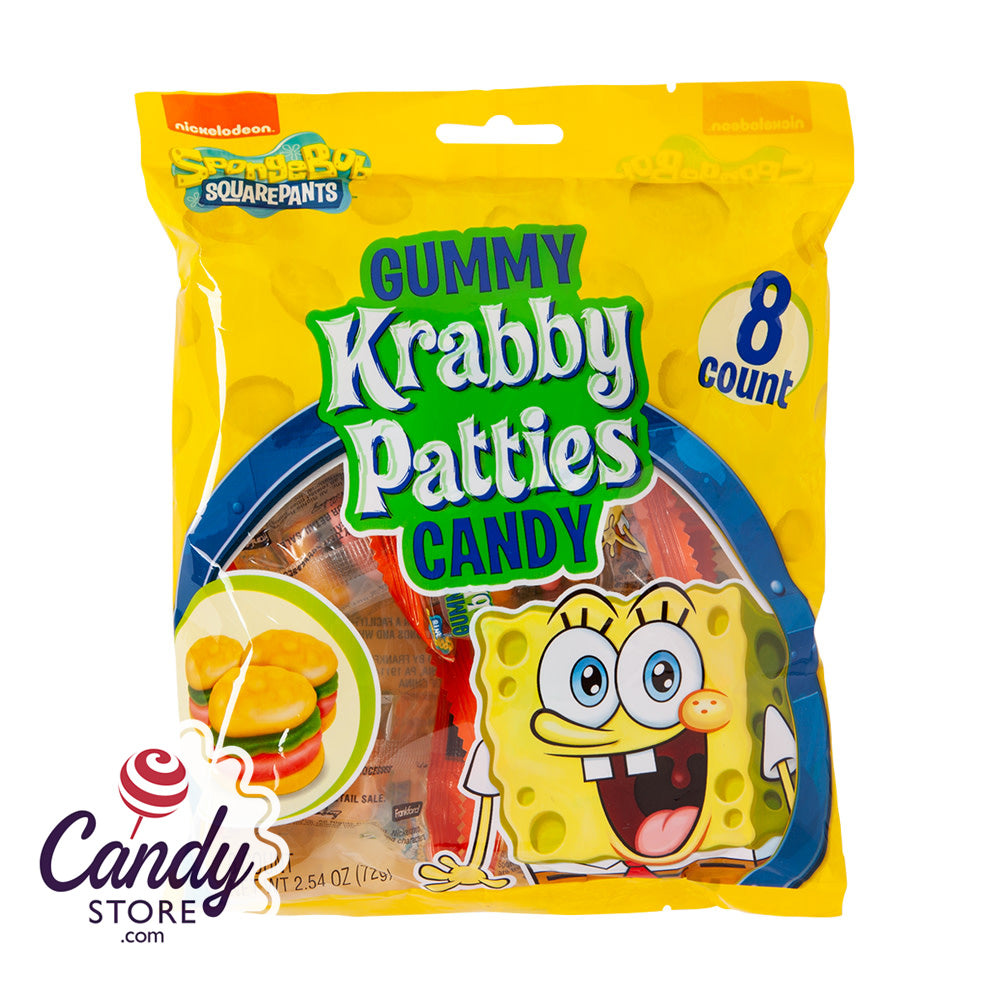 Frankford SpongeBob Krabby Patty Gummies are individually wrapped fruit-flavored gummies shaped like burgers, perfect for cartoon fans.