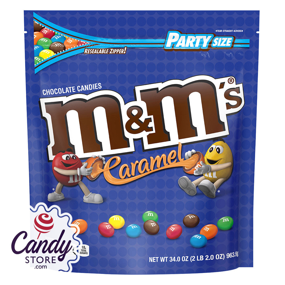 Indulge in creamy milk chocolate and crisp candy shell with an added caramel center in M&M'S Party Size bag.