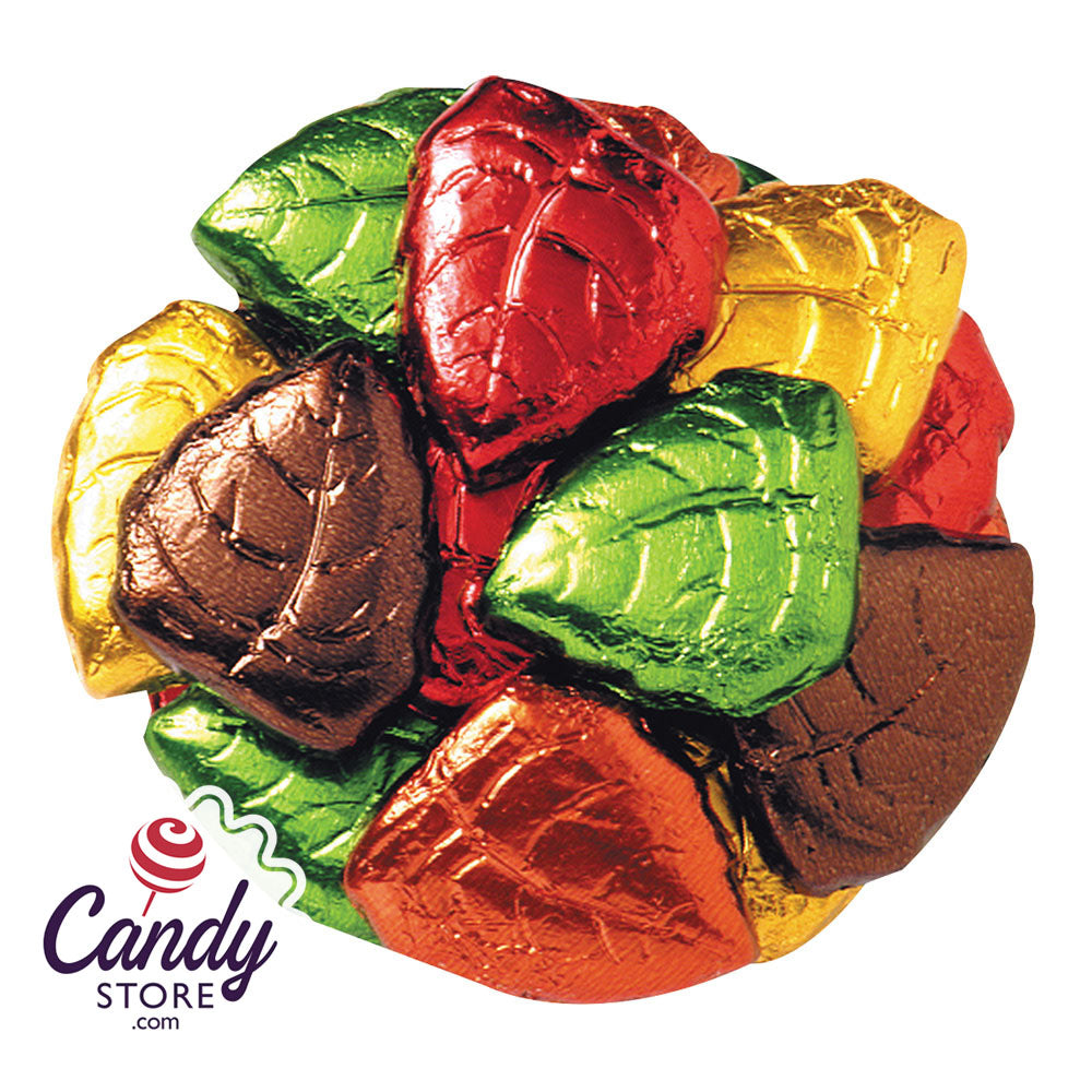 Delightful foil-wrapped chocolate leaves in five autumn colors for candy jars, table décor, and party favors.