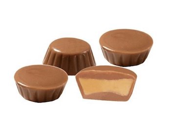 Milk chocolate peanut butter cups, mini size and ready to adorn whatever confection you can find to decorate them with. Toppings for ice cream, or cupcakes or breakfast cereal. . . why not. Mini chocolate peanut butter cups are so versatile.