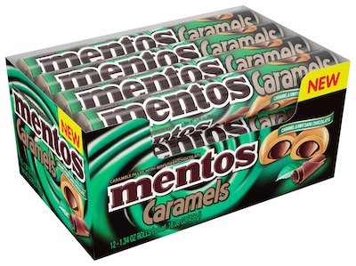 Delicious caramels filled with minty dark chocolate from the fresh-maker, Mentos! Get fresh for your date while also ingesting a natural aphrodisiac, chocolate! You've never had a caramel quite like this before. Rich dreamy caramel from Mentos is decadent enough. Fill it with a mint and dark chocolate filling and you're at a whole nother level.