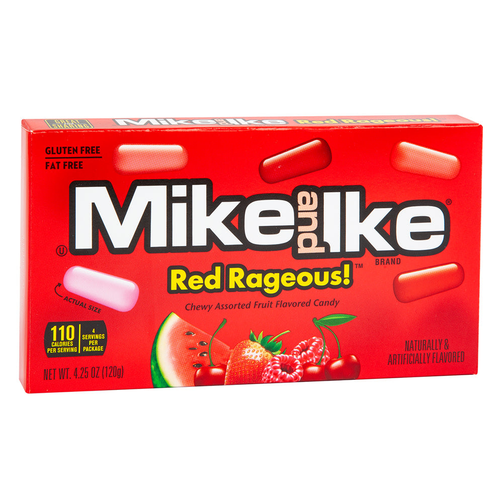 Vibrant Mike and Ike candies are chewy and fruity! Red Rageous features strawberry, raspberry, watermelon, fruit punch, and cherry in theater box.