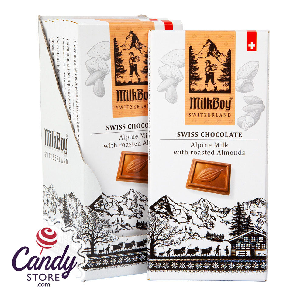 Milkboy Swiss Alpine Milk Chocolate With Roasted Almonds 3.5oz Bar - 10ct CandyStore.com