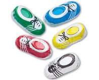 Each includes a tied shoe lace and three stripes in black or white. Chocolate sneaker colors include red, blue, green, yellow and white. Use them to fill up treat bags for sports themed parties or serve them at sporting events like the kid's softball or soccer games! Chocolate sneakers even make a delicious after school snack.