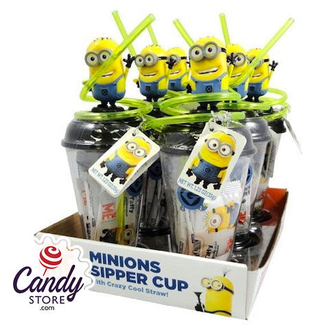 Individually wrapped taffy inside fun Minions novelty sipper cups! Despicable Me fans will love these sipper cups with a twisty straw designed with Minions.