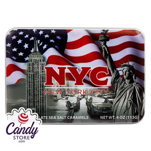 NYC Souvenir American Flag Milk Chocolate Sea Salt Caramel 4.02oz Tin - 9ct CandyStore.com