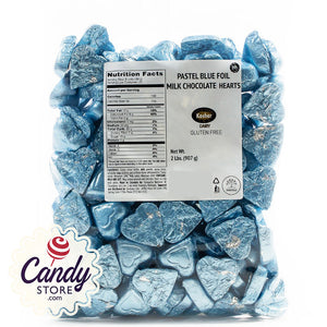 Pastel Blue Foil Chocolate Hearts - 2lb Bulk CandyStore.com