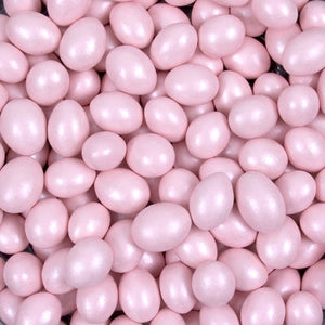 Add elegance to any table or display with pastel pink sparkle chocolate almonds! This dazzling candy is sure to grab attention. Not only is it delicious, but it's also beautiful enough to make your venue or decor look even better.