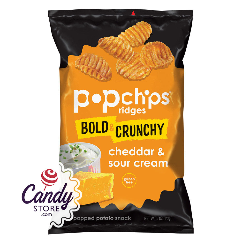 Popchips Ridges Cheddar And Sour Cream Chips 5oz Bags - 12ct CandyStore.com