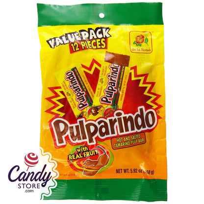 Pulparindo is a Mexican candy produced by world renowned De La Rosa. Each bar shaped piece comes individually packaged. This unusual confection is made using tamarind fruit pulp combined with sugar, salt, and a helping of spicy chili pepper. The result is a memorable confection that's spicy, sweet, and salty! Take your taste buds on a south of the border adventure with the irresistible taste of Pulparindo candy!