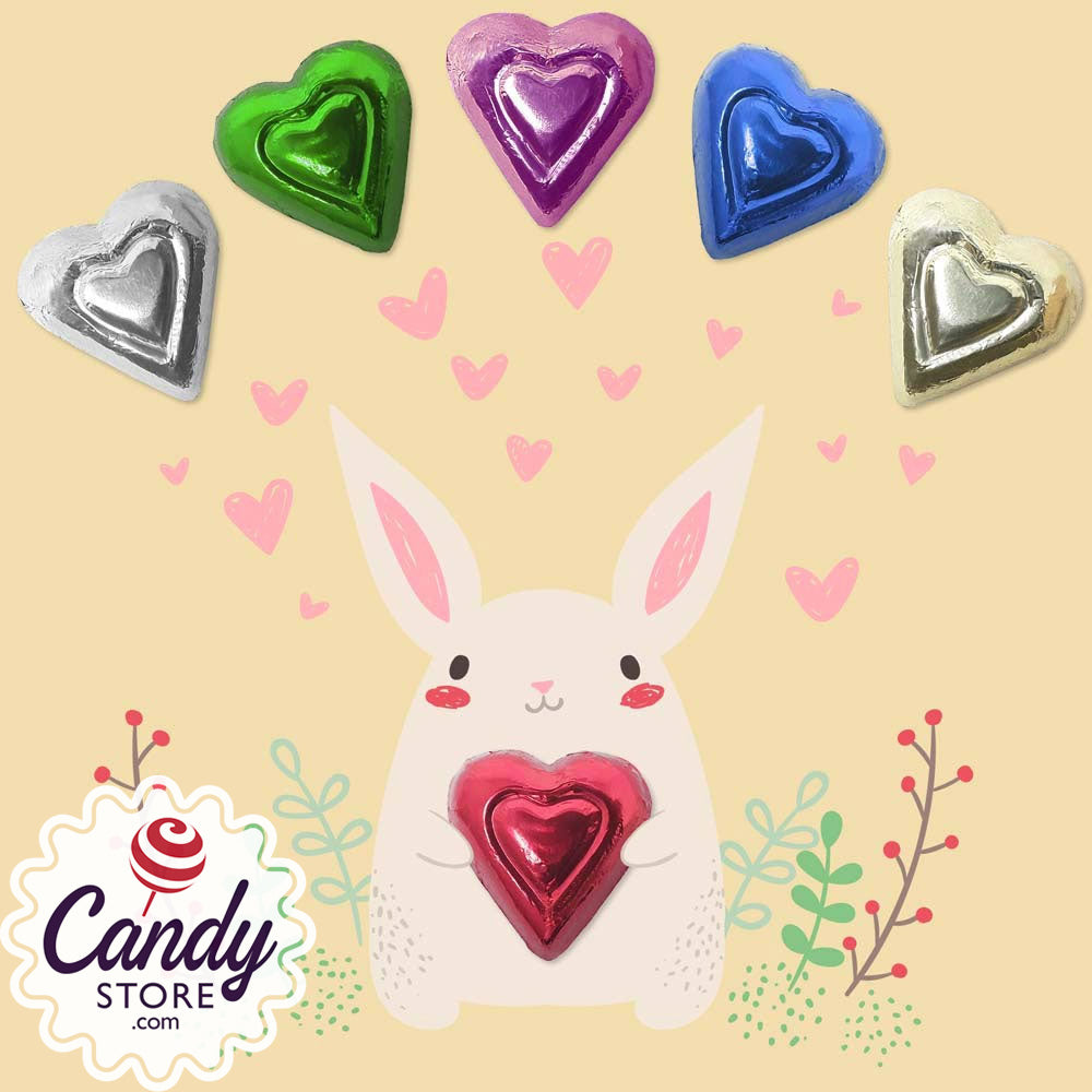 A colorful alternative to traditional red chocolate hearts, these rainbow-colored milk chocolate hearts offer multiple merchandising opportunities.