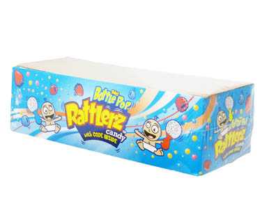 Each Rattlerz baby rattle also includes a hard candy lollipop attached to the base. Lick the pop and dip it in the edible beads for a two-in-one treat or enjoy each separately. No matter how you prefer to eat them, each Rattlerz is sure to satisfy even the most demanding sweet cravings.