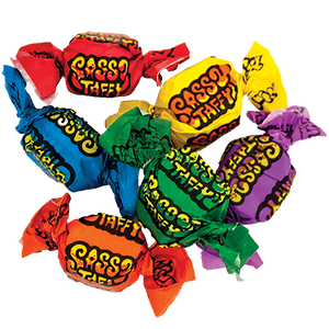 Me. Ow. These Sassy Salt Water Taffies have enough sweet and sour spunk to knock you back to last Tuesday! In a colorful mix of blue, yellow, orange, green, red, and purple these saucy salt water taffies make a bold addition to a pinata, party favor bags, and candy stashes.