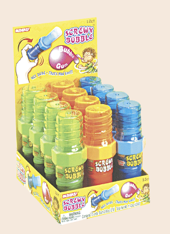 Use them to fill up birthday party favors or hand them out as prizes after games or school activities. Screwy Bubble also makes a delicious stocking stuffer. Keep them at home as a fun treat for the kids or make an event extra special with unusual Screwy Bubble bubblegum dispensers!