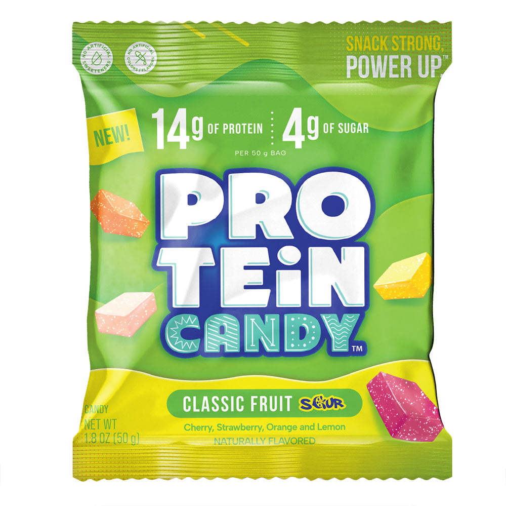 Sour Protein Candy Classic Fruit delivers the tart, fruity punch you crave in a 1.8 oz peg bag format. This innovative candy combines 14g of protein with just 4g of sugar per bag, creating a guilt-free snacking experience.