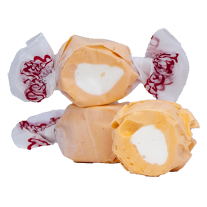 Tangerine salt water taffy brings together chewiness, sweetness and a touch of refreshing citrus! Imagine the amazing flavor of a ripe, juicy tangerine then combine that with a sweet, chewy confection and you have this one-of-a-kind fruit candy!Salt water taffy is a true classic that families have enjoyed for generations. Ever since it was first created way back in the 1880s, it's become a favorite among young and old alike.Our delicious tangerine salt water taffy includes a brilliant orange layer that surrounds a generous portion of white at the center. The color scheme looks stunning whether you're displaying these enticing treats in a glass candy bowl or wedding favor.Keep our bulk salt water taffy package on hand as an easy snack that will instantly satisfy sweet cravings or take one to work and share with colleagues. Order tangerine only or browse our full list of salt water taffy candy to build your own custom mix!