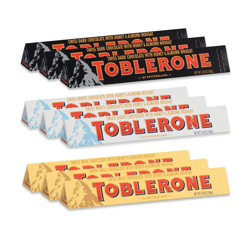 Yo-da-lay-hee-hoo! Your taste buds will yodel with delight while indulging with these classic candies, Toblerone Milk Chocolate Bars. Inspired by the snowy peaks of the Swiss Alps, Toblerone's gourmet chocolate triangles are brimming with sweet honey and almond nougat in the center of every chocolate bite.