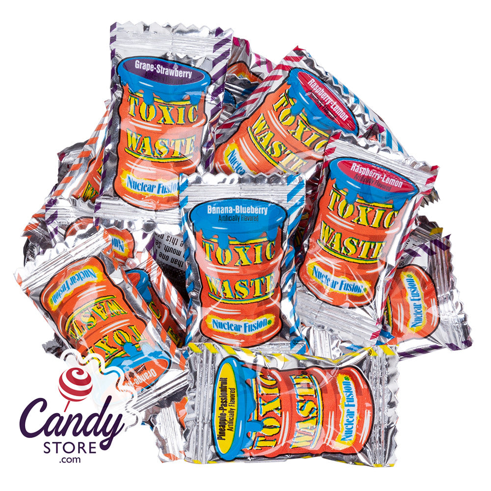 Toxic Waste Nuclear Fusion Sour Candy offers a combination of two fruity flavors in every mouth-puckering candy, making customers cringe and smile.